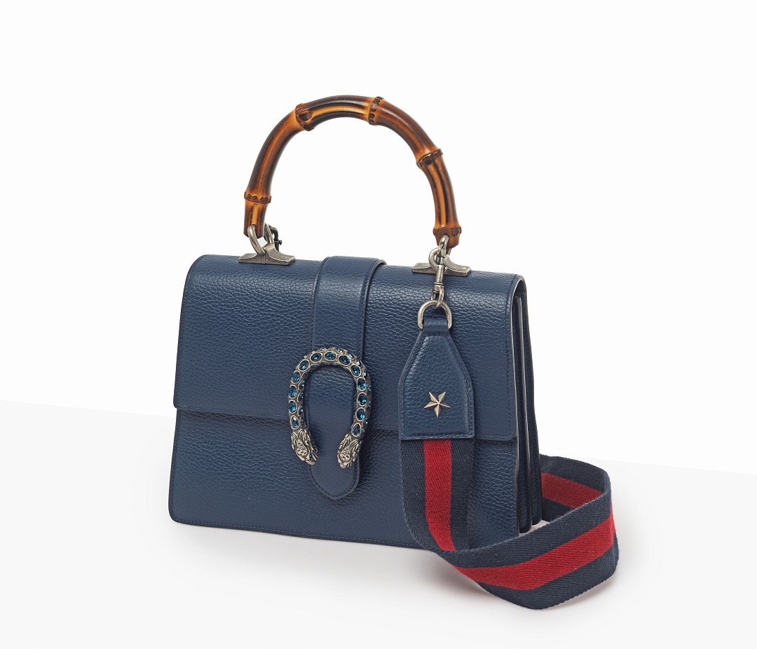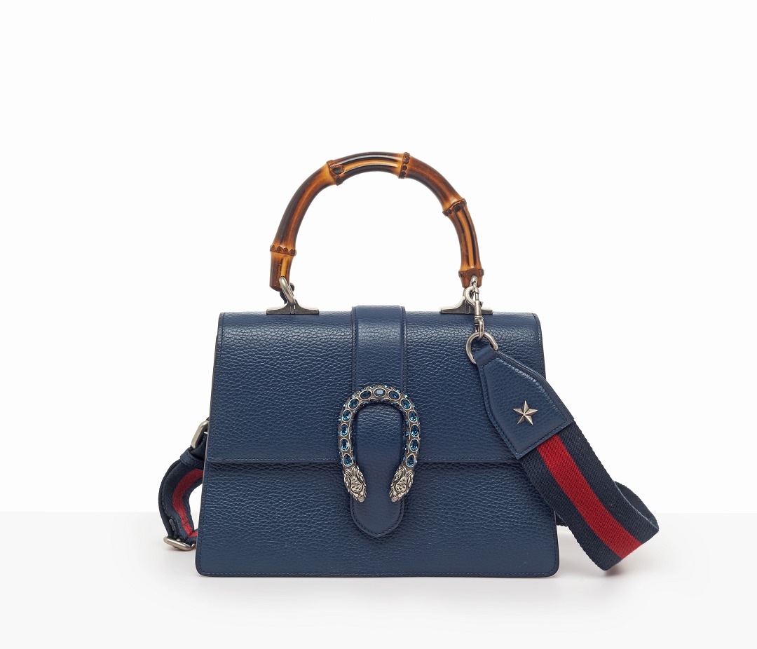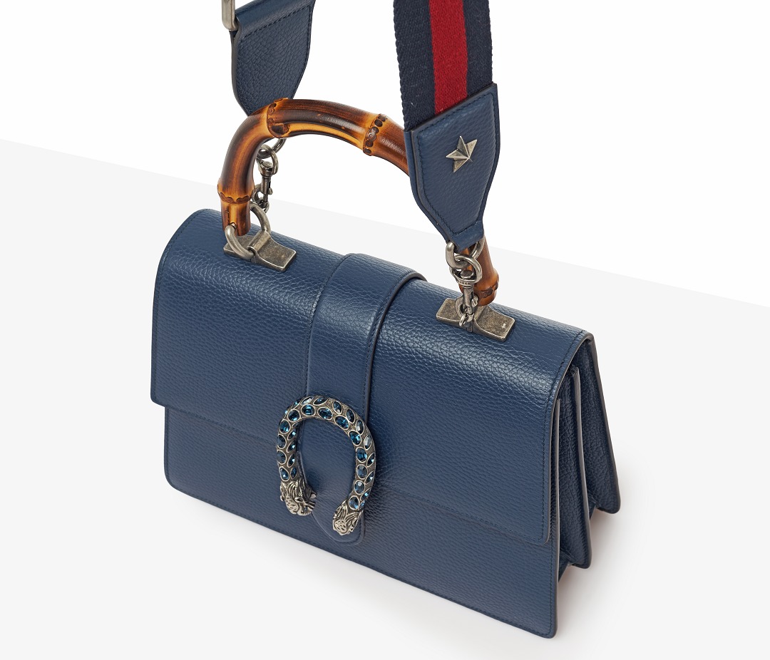2016秋冬女装系列中,Alessandro Michele 在酒神包添加了竹节手柄,便有了这款「酒神竹节包」。竹节手柄自1947年诞生至今,已是品牌最经典的元素之一。