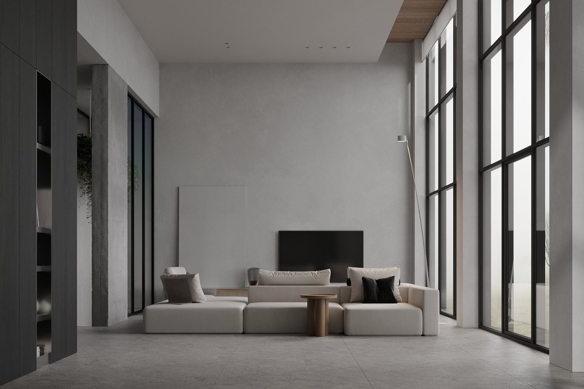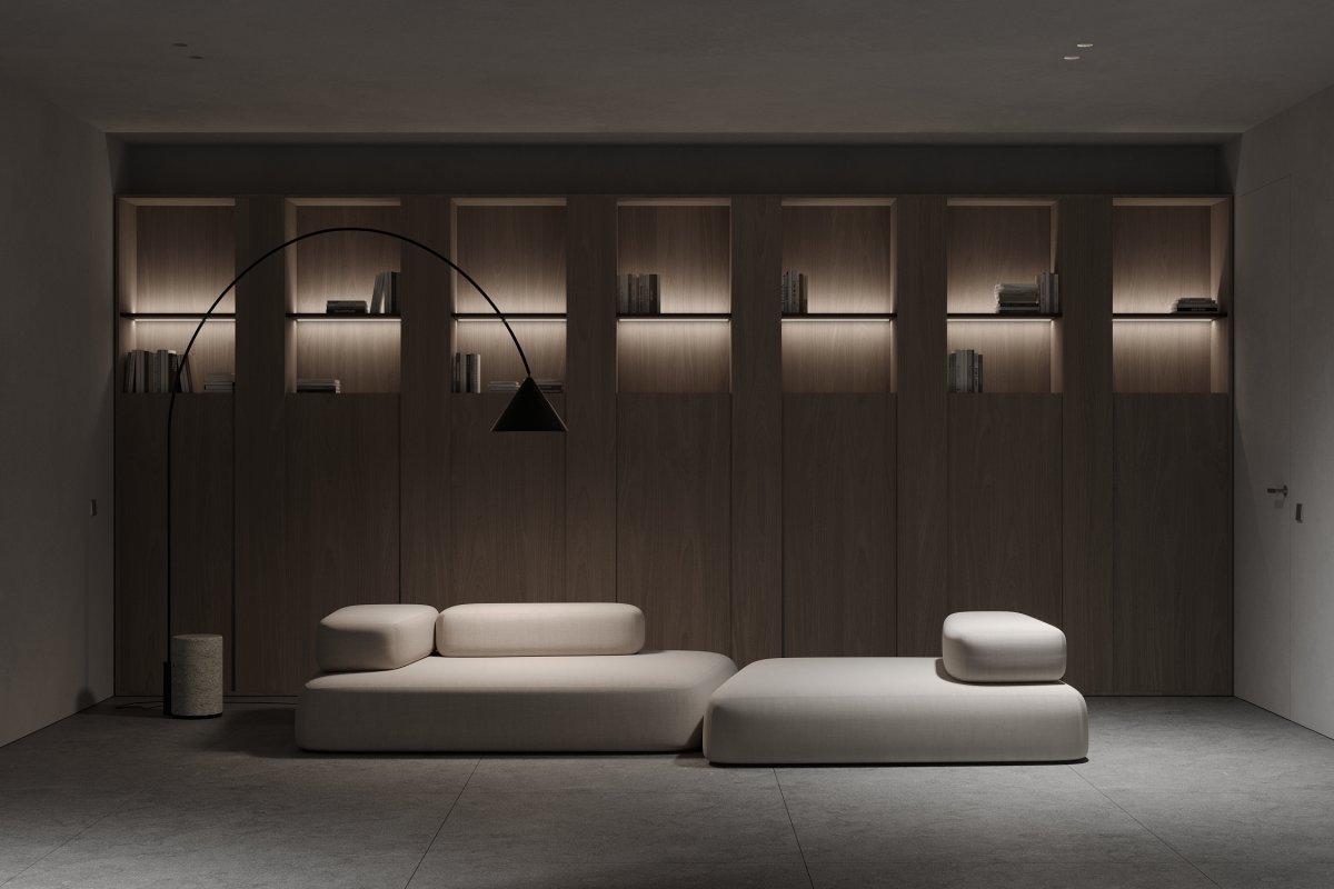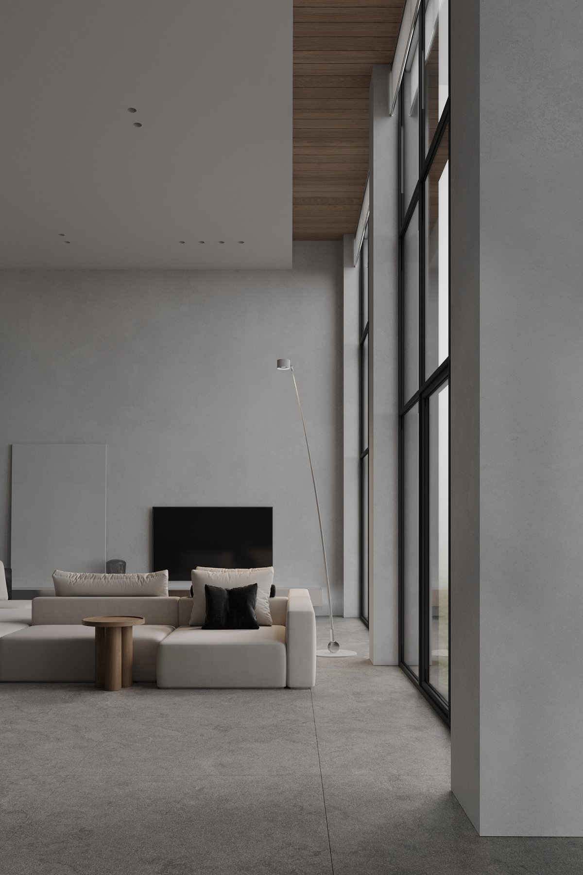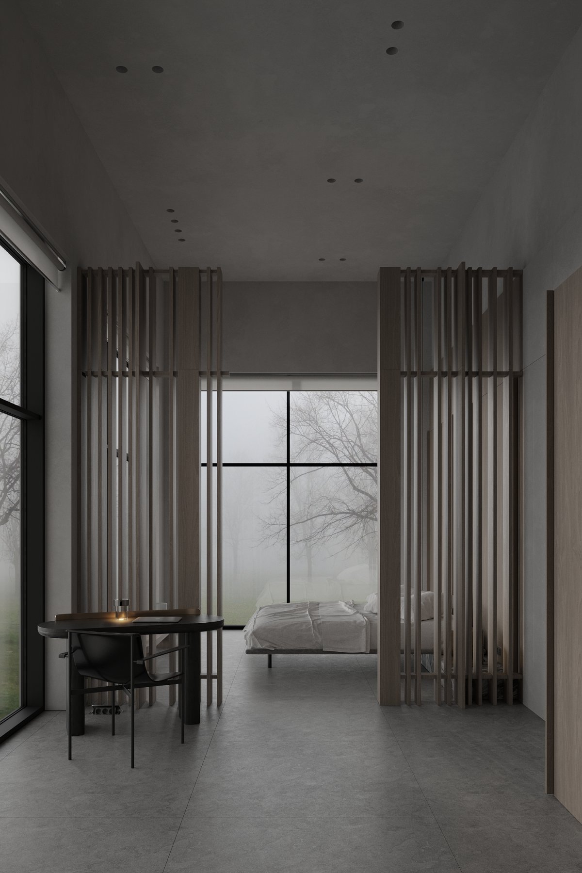 The project is located in Bereski and is a new project of ZE Workroom, an interior design studio based in Moscow. They prefer minimalism, harmony and extraordinary shapes and natural materials.