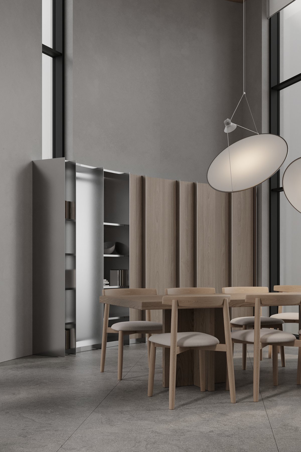 When designing the Bereski office, ZE Workroom started from the principle of “empty space – full head”, because they sincerely believe that it is impossible not to concentrate in this office. At the same time, a large and harmonious desk, plenty of air and storage space, where people can be alone with themselves and where nothing can interfere with the work and creative process. On the lower floors of the Bereski there are bathrooms, a sauna, a relaxation area and a wine cellar where one can take a good rest.