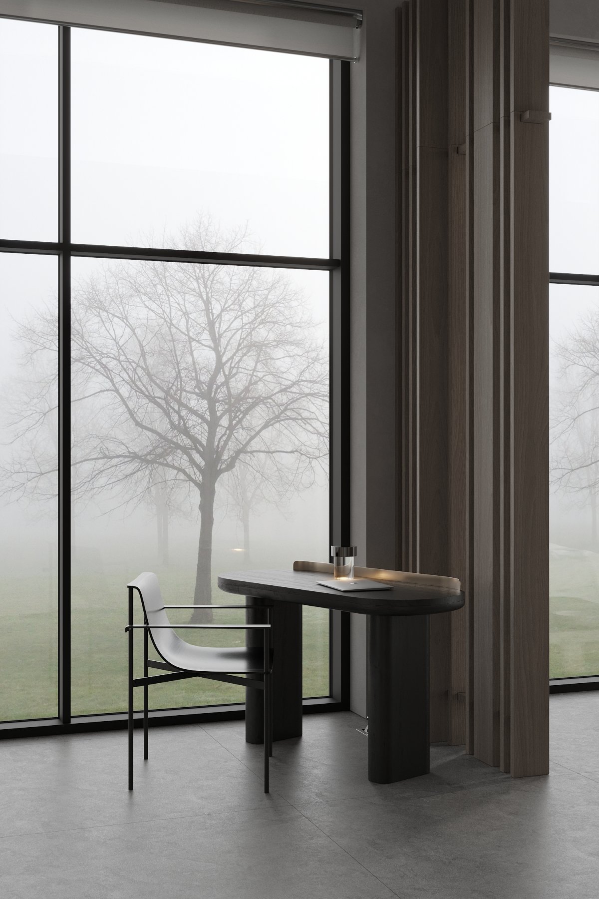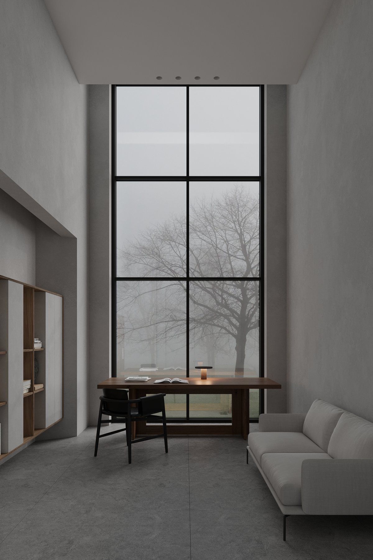 在设计Bereski办公室的时候,ZE Workroom从“空的空间-满的脑袋”的原则出发,因为他们真诚地相信,在这个办公室里,不可能不集中注意力。同时,一个巨大而和谐的桌面,充足的空气和存储空间,可以让人们在这里独自面对自己,以及任何事情都不会干扰工作和创作过程。在Bereski的较低楼层,有浴室、桑拿房、休闲区以及酒窖,在那里人们可以好好休息。