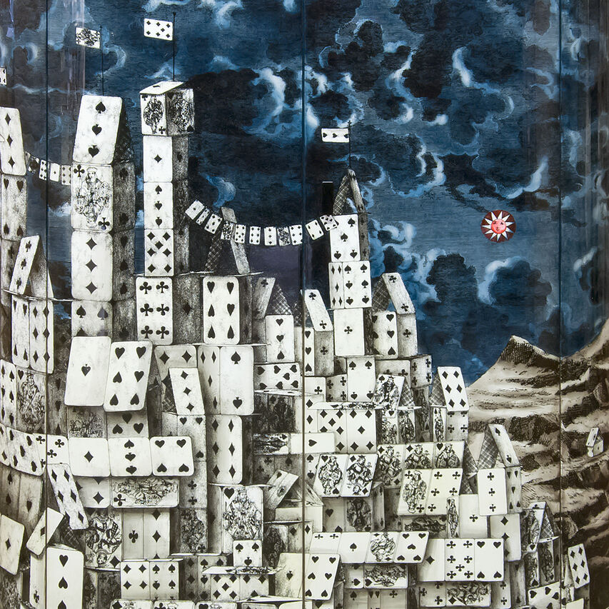 Fornasetti 弧形橱柜是一款木质储物家具,采用 Atelier 的传统方法手工丝网印刷、喷漆和上漆。