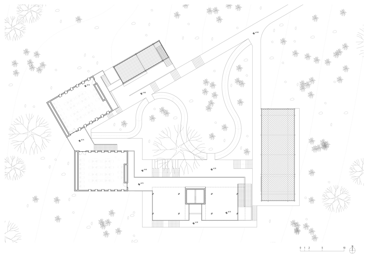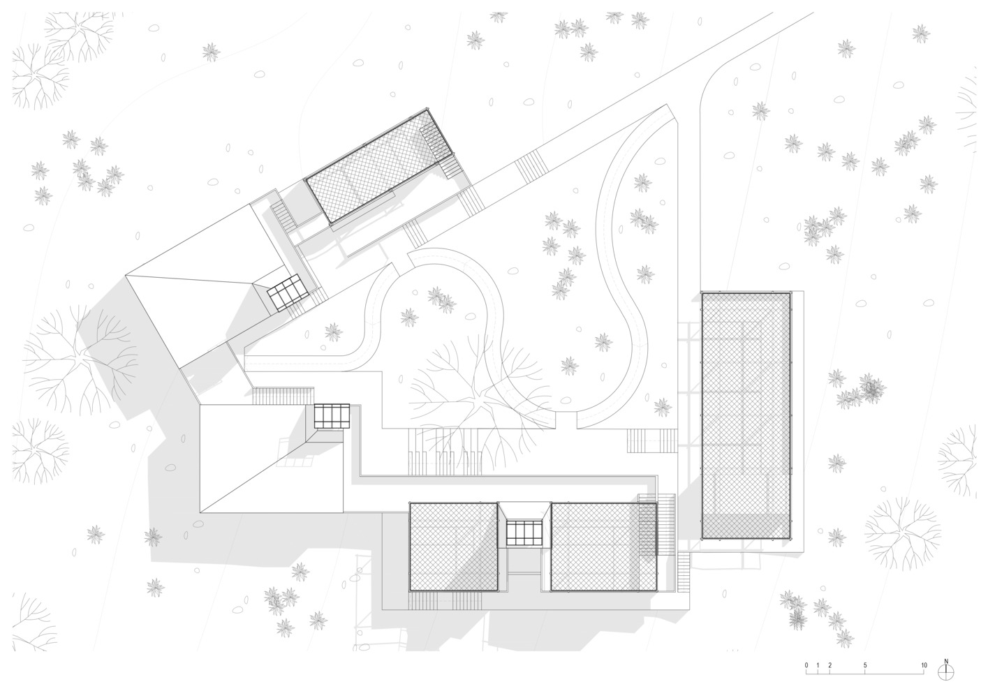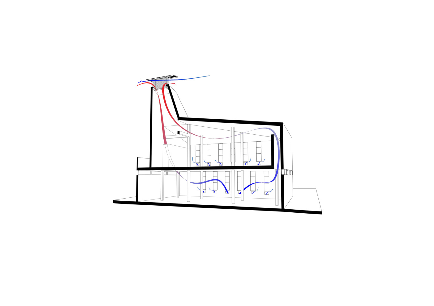 肯尼亚“狮子”初创园区是坐落于肯尼亚图尔卡纳湖畔的信息与交流技术园区。其设立旨在应对当地年轻人失业问题,为他们提供高水平职业训练与国际工作机会,助力年轻初创公司在当地存活运营。目前园区可提供100个工作位,理想状态下将在偏远地区推进ICT网络资源。 该项目由Kéré Architecture设计,尊重当地地形与自然环境,依坡而建。延伸的屋顶露台可赏图尔卡纳湖,被爬藤植物包裹遮阳,是室外聚集和灵感交流的理想场所。 项目灵感源于当地白蚁群建造的高耸土丘,高耸通风塔抽离热气,新鲜空气从特定低开口进入,保证工作空间凉爽舒适,且塔形设计成为园区地标。 建材选用当地采石场带石膏饰面的材料,综合考虑生态可持续性、造价和实用性。项目决策过程中与当地社区深度互动,汲取居民经验。