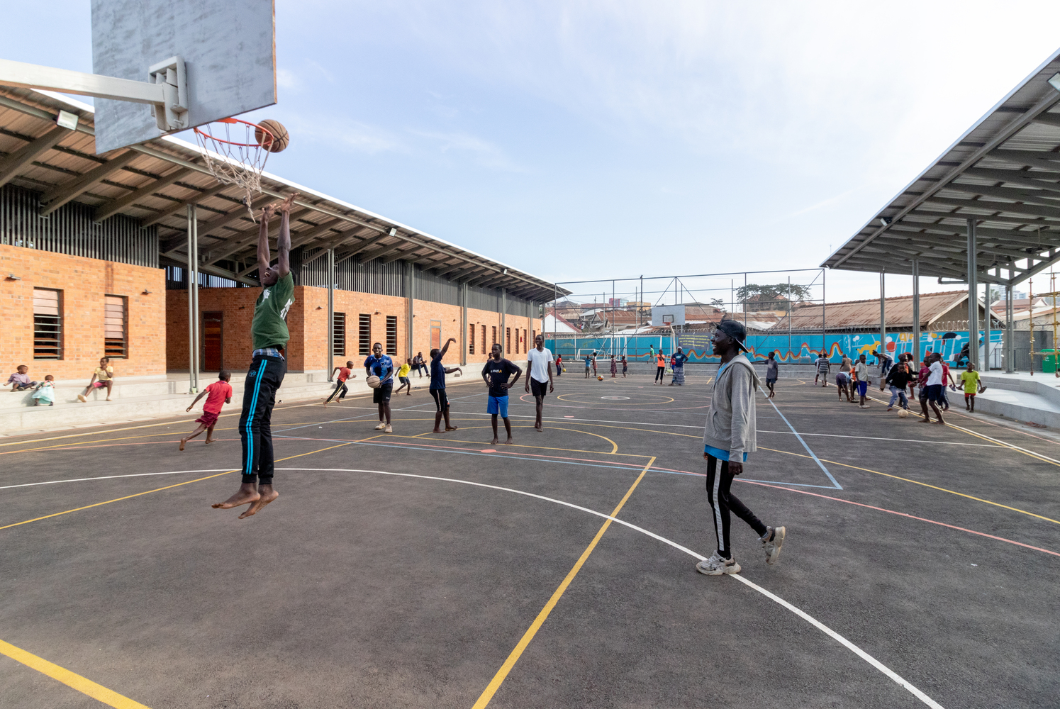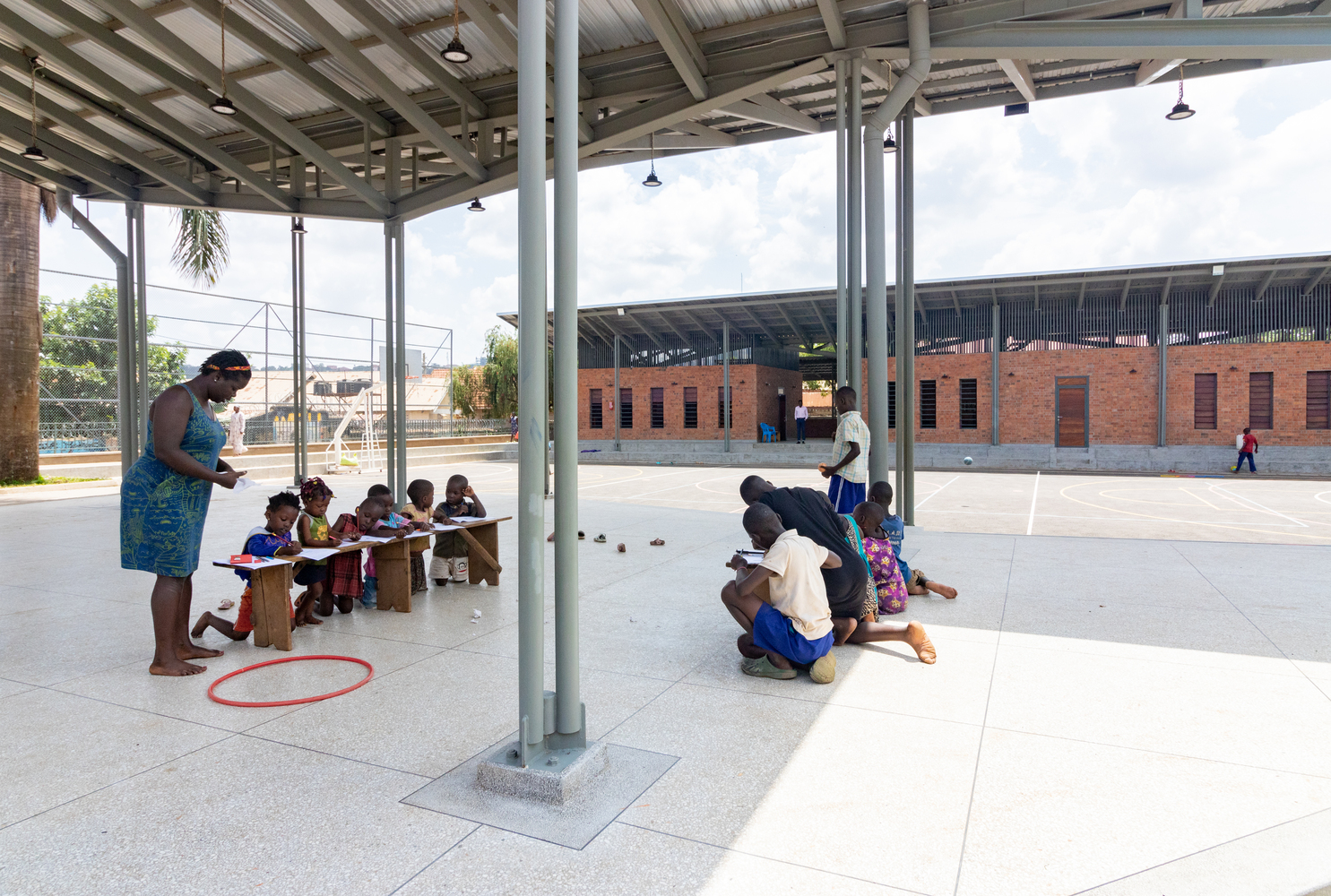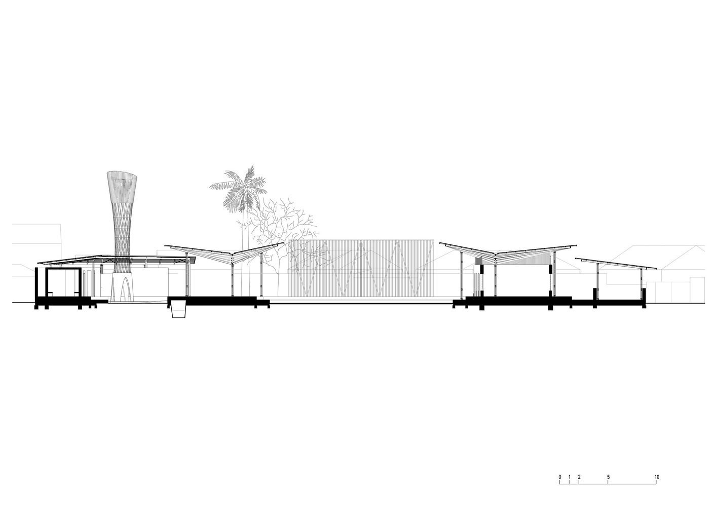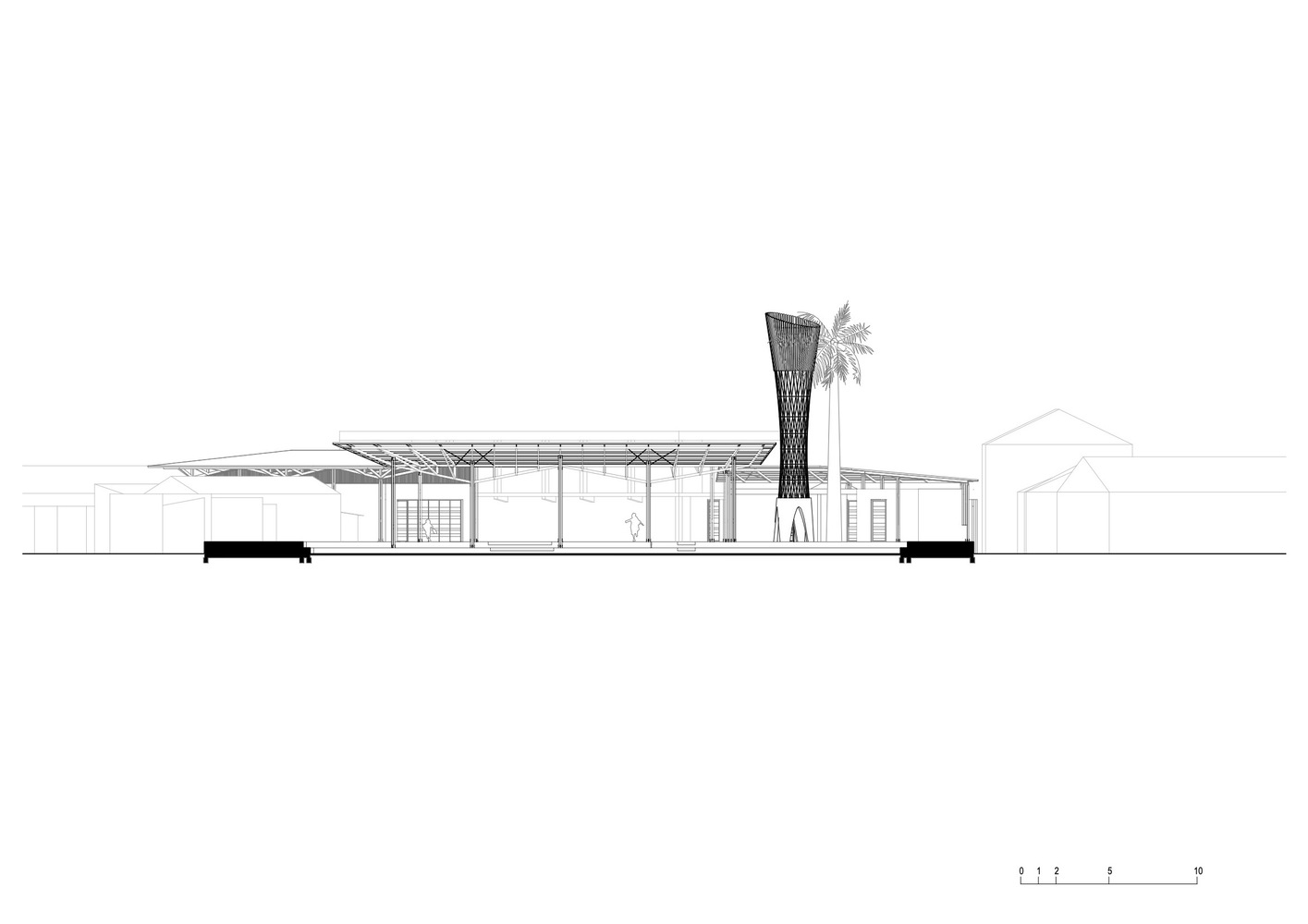 来自建筑师的介绍:Kamwokya社区中心由当地非营利机构Kamwokya基督教关怀社区(在乌干达首都坎帕拉最贫困地区之一开展体育、休闲和艺术活动)与Ameropa基金会(运作国际项目改善边缘社区生活)合作打造。 该项目由Kéré Architecture设计,目标是维持并强化场地的公共性与自由性。建筑师在原有场地和建筑环境基础上进行改善,未让社区中心脱离背景条件而孤立。项目中的游乐场为体育训练、比赛、聚会、社区活动、研讨会、音乐舞蹈课等已有的活动提供了更便利空间。 项目建在设有高效排水系统的平台上,以应对暴雨洪涝。平台通过水平差异划分区域,可让多种活动同时开展互不干扰。主要运动场具备排水和遮阳功能,四周阶梯可作非正式聚会或观赛场所。 平台上有两座自然通风建筑,内含小型健身房、网吧、多用途教室和研讨室、音乐工作室、办公室及相邻公共厕所。这些空间由两个钢结构抬高的蝶形屋顶覆盖,利于空气流通,也使场地在城市中极具辨识度。 除实际功能外,该项目还希望成为灵感与自豪感的来源,改变社区,培养居民的管理意识与归属感。