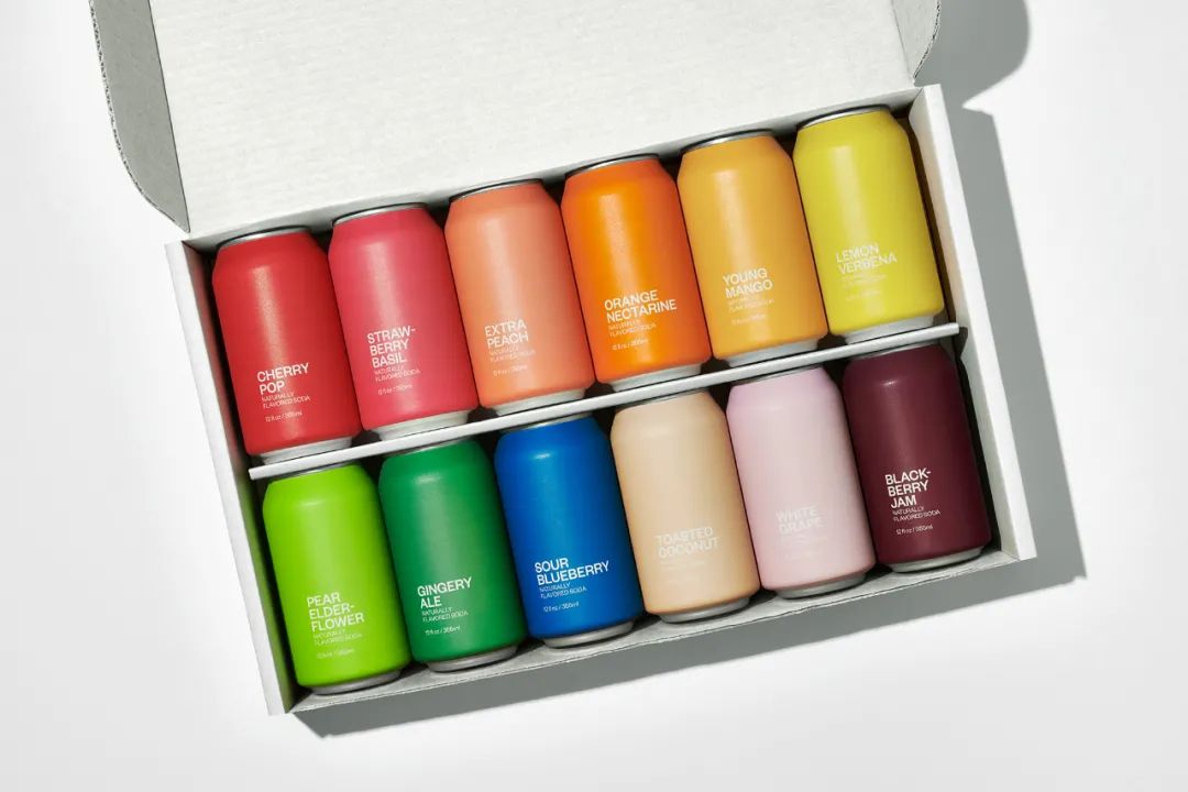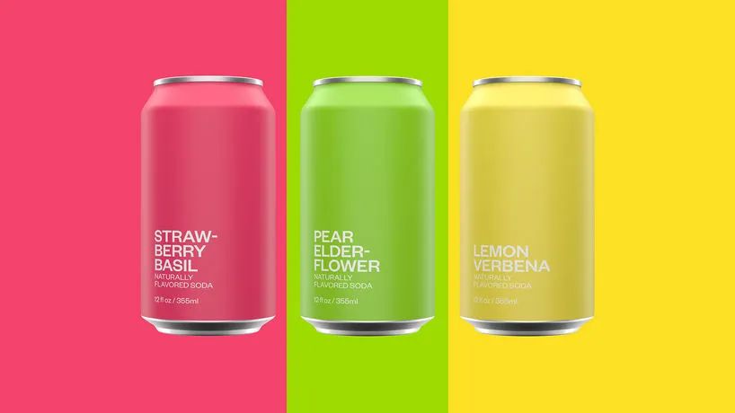 这套包装设计堪称极简主义大作,极其简约的排版加上一系列充满活力的色彩,统一了这一品牌独特的12种苏打口味——从“烤椰子”到“黑莓果酱”。