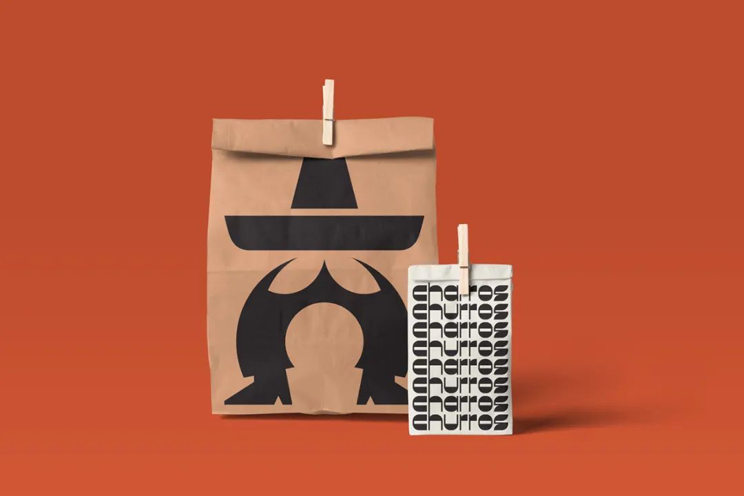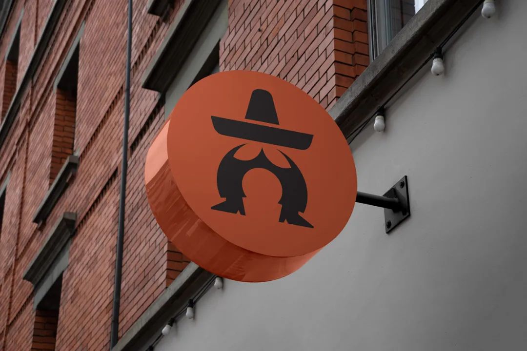 这一套品牌形象由Culto工作室设计,标志是一个头戴墨西哥宽边尖顶草帽的卡通人,卡通的头部和上身都省略,夸张的双腿体现了外卖的属性,红黑的品牌色,既有食欲又充满鲜明的个性。