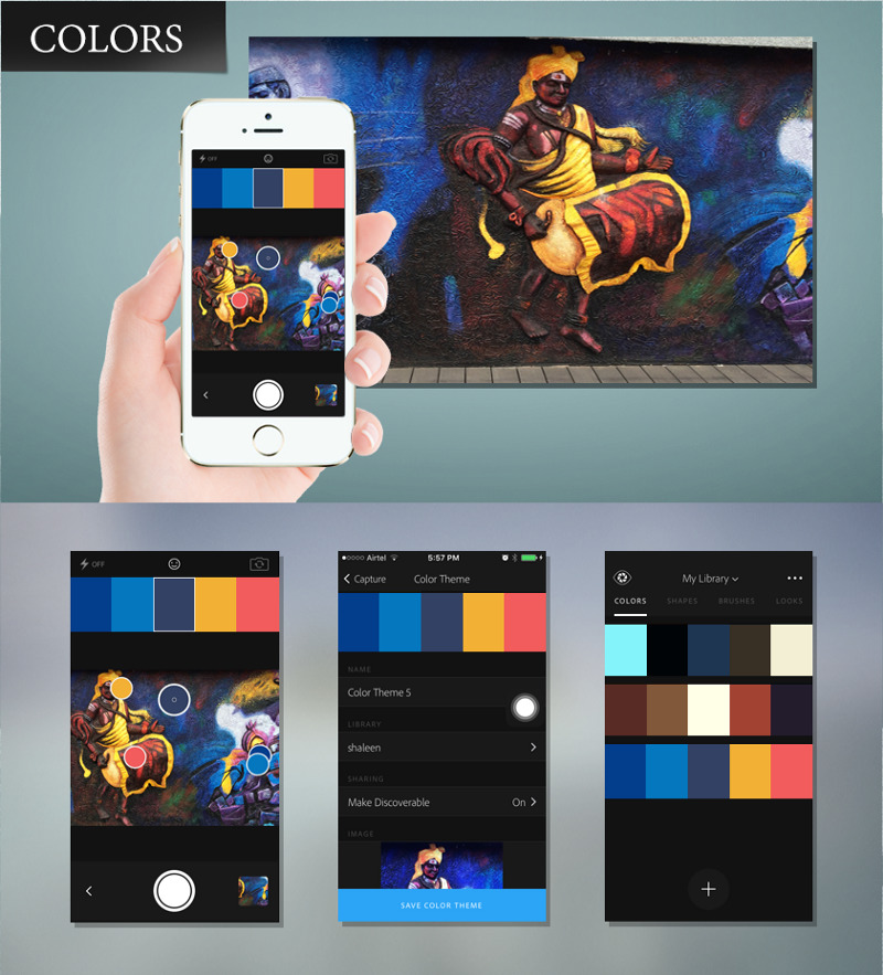 这款工具应该脱胎于最早的 Adobe Kuler,之后 Kuler 在桌面端演变成为 Adobe Color CC,成为了创意云软件中的一员,而移动端上则进化为另外一个更为独立的工具——Adobe Capture 。