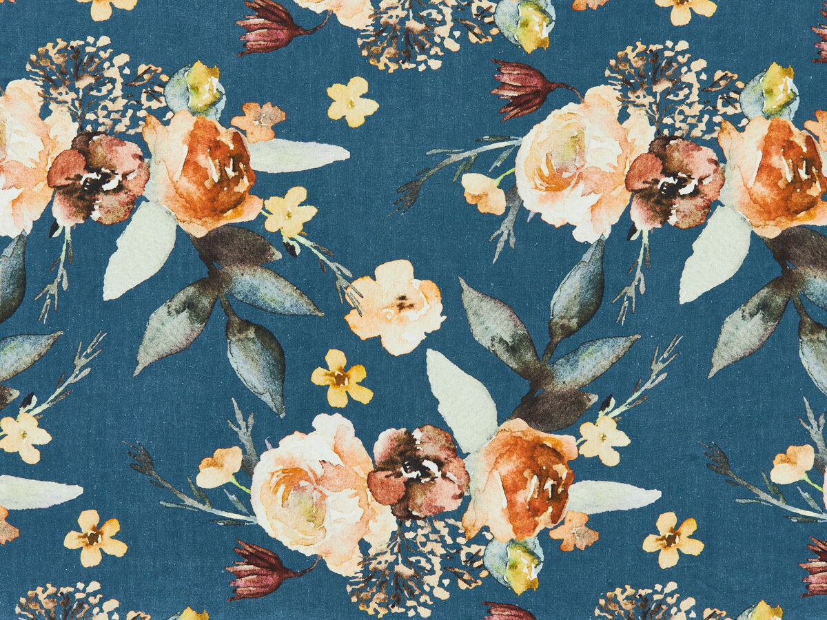 玫瑰花束在 100% 亚麻织物上翩翩起舞,该织物基于手绘模板在意大利威尼斯郊区进行数字印刷。亚麻织物具有花卉颜色的复古外观和真正的悬垂感,这归功于篮子杯饰面。