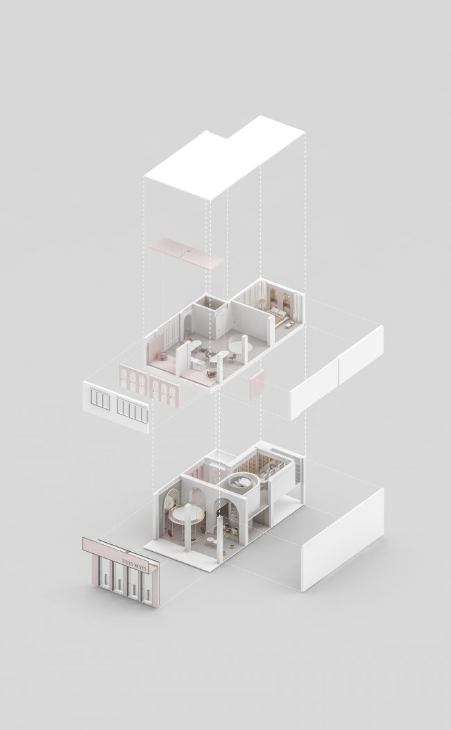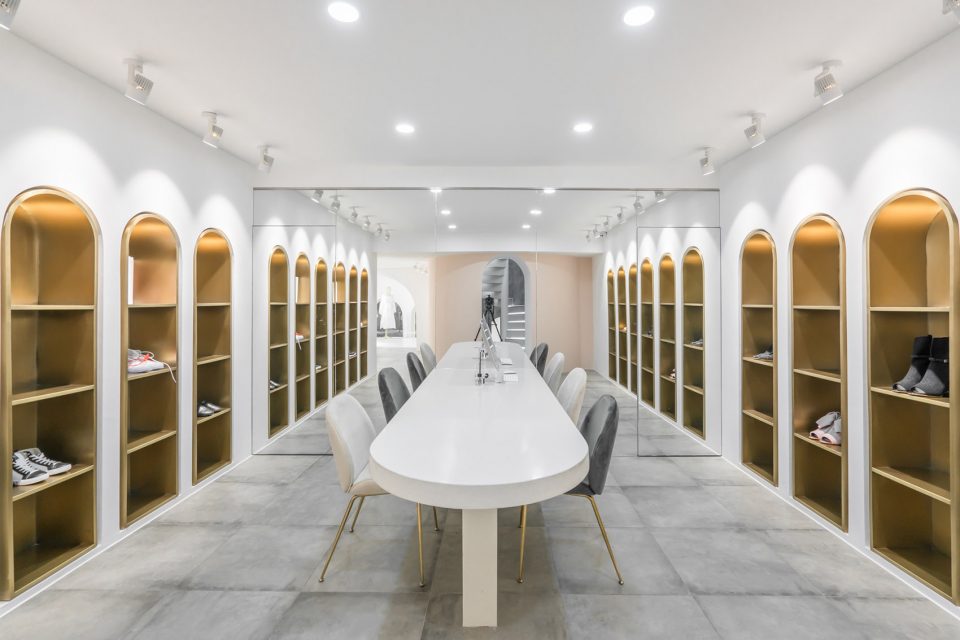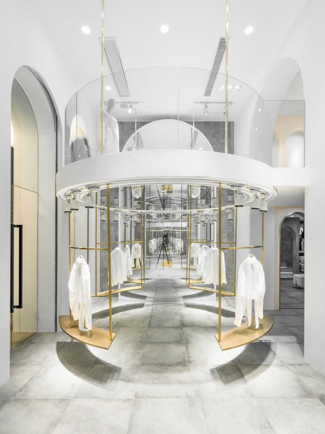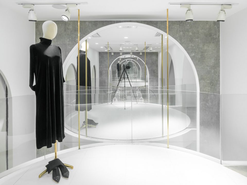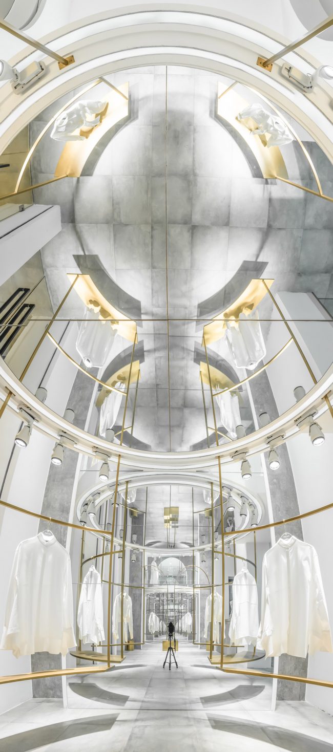 Mirror – “Self” is invisible, bumping into something else, and rebounding to understand itself — Yohji Yamamoto. As well as meeting the customer’s requirements for fitting, designer exaggerated the use of mirror in the design by repeating specific specular reflection to construct an infinite space with a unique spatial and visual experience.