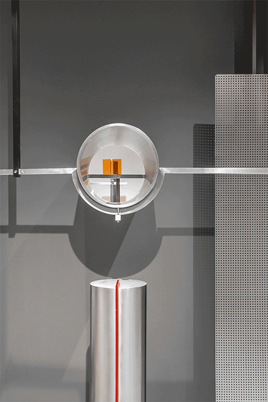 ▼陈列空间,用不锈钢、穿孔板、水泥空心砖等工业化材料作为空间陈列道具的“零部件”,the display area, using industrial materials such as stainless steel, perforated plates, and hollow concrete bricks as the “parts” of space display props ©曾喆