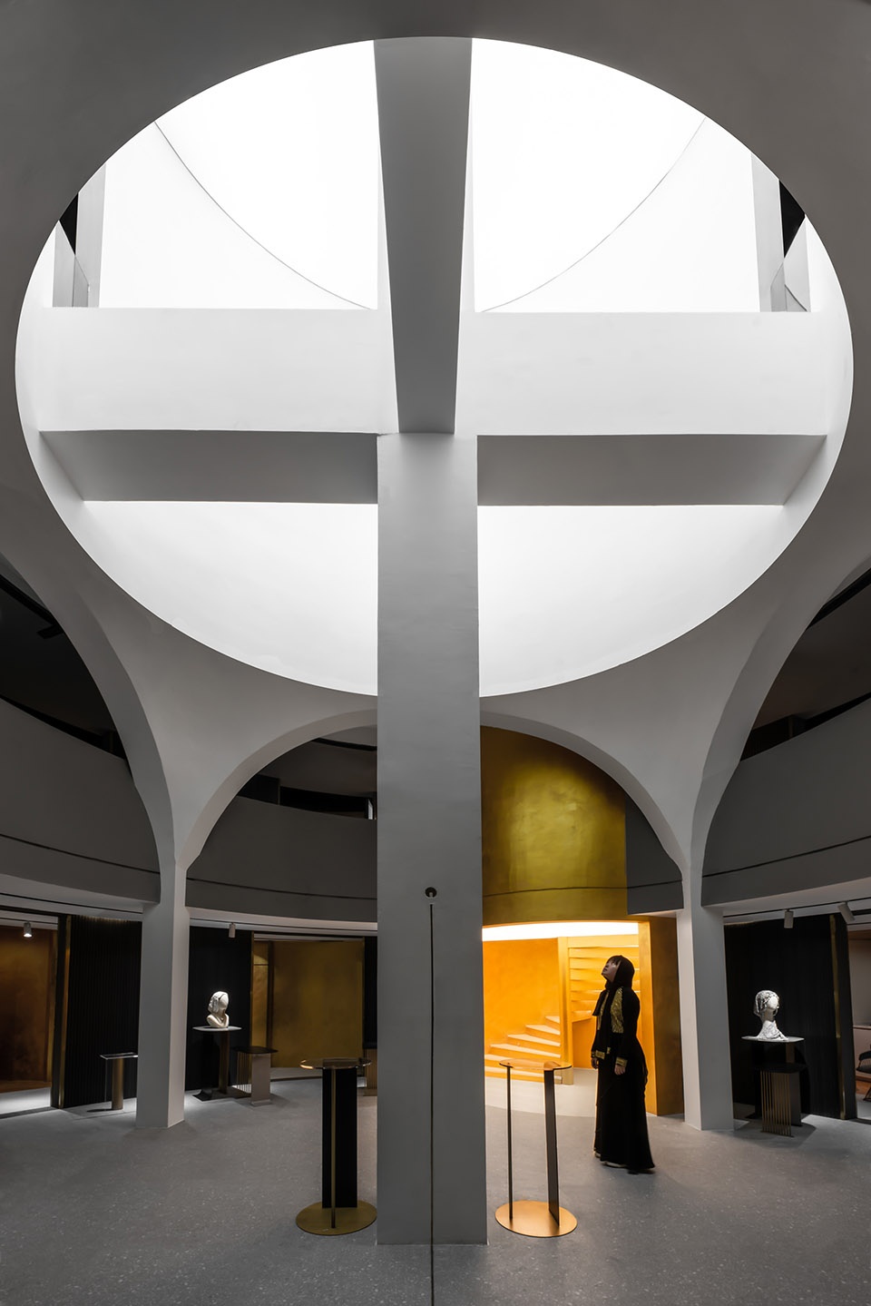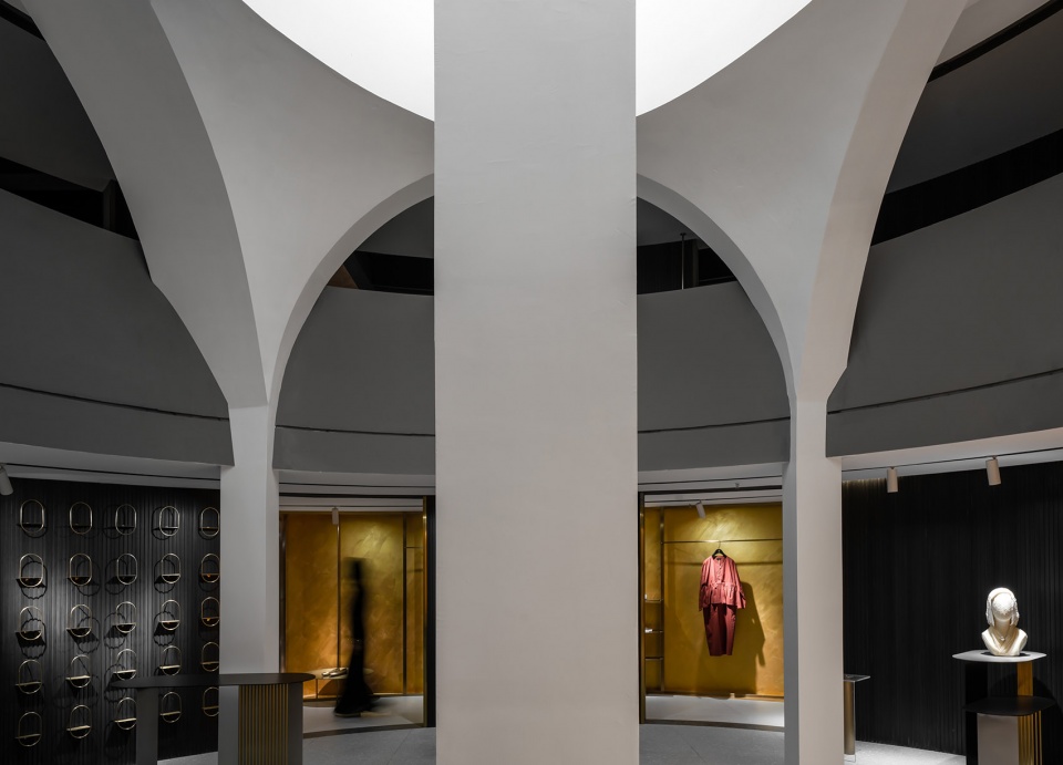 Covered by the dome, the ground floor has a broad view; the view on the 1st floor is confined by the “cave”; and only when the customers arrive at the 2nd floor can they peek through the crevices to see what exactly it is like. The customers will get defamiliarized with the classical design step by step, but somehow still feel familiar at the same time. They will perceive the self-evident characteristics in classical design.