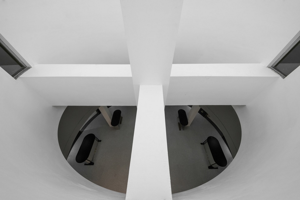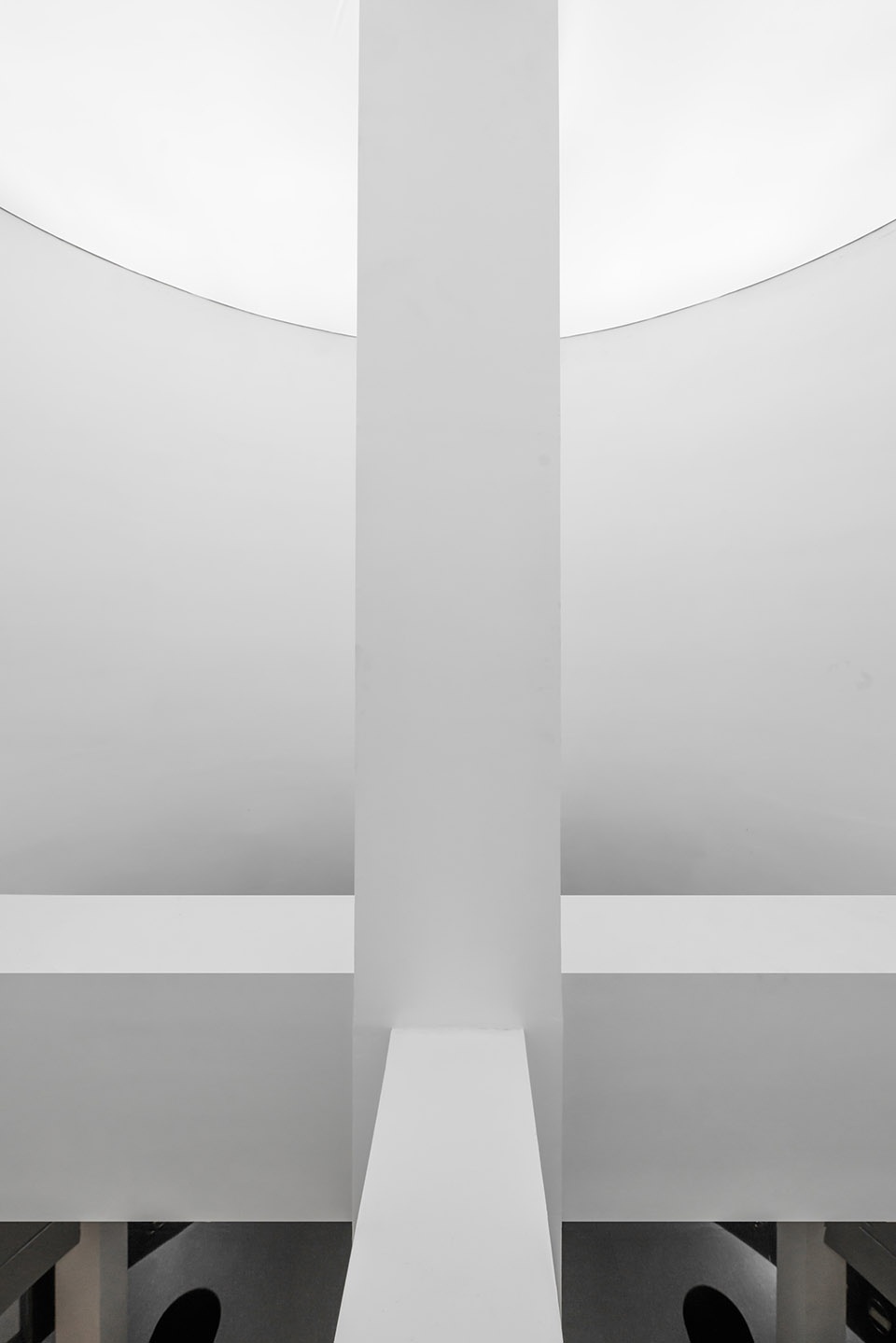 ▼透过圆筒上的四条细缝,可回看底层的中心立柱与十字梁 ©曾喆