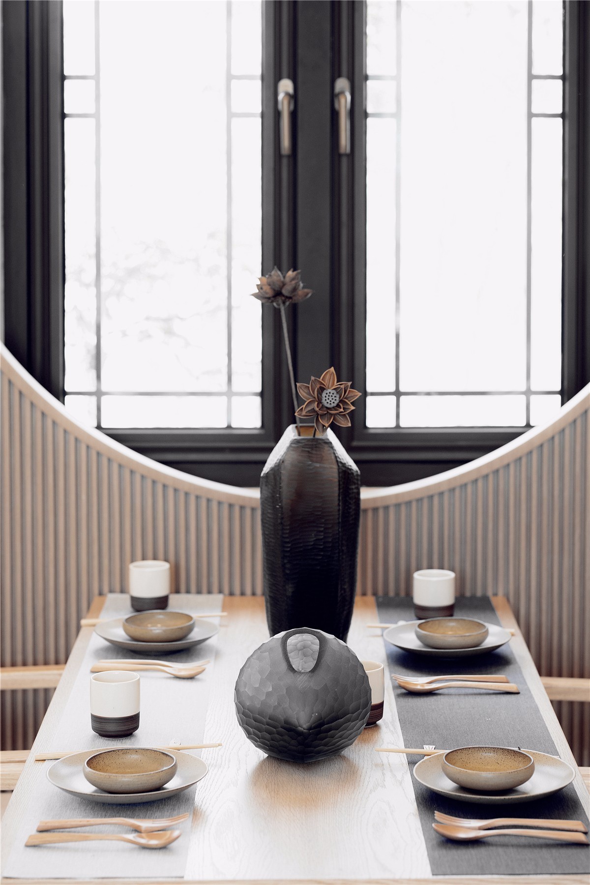 质朴的材质还原真实、塑造真实,人们从中能够真正悟到禅的品质要求。自然的木料、石头、茸草、竹、纸等哑光材料,它们随意的形态,或粗糙或细腻的质地,更是呈现出了材料的本色之美。