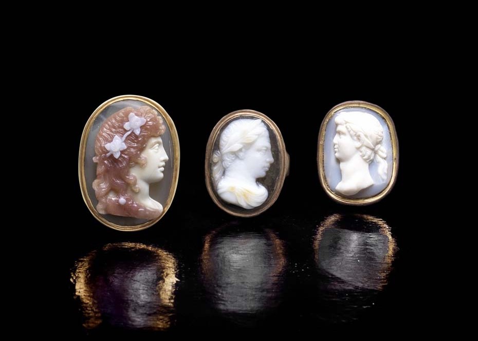 最早的浮雕技艺出现在古埃及,当时的宝石被雕刻成圣甲虫的造型,以表达古埃及人对于这种生物的崇敬。The Ceres Collection 的作品中有一枚石榴石戒指正是以圣甲虫的造型呈现,其背部雕有一名男性头部的肖像。这枚戒指是整组拍品中最古老,也是最昂贵的一枚,预估价格达3000-5000英镑。