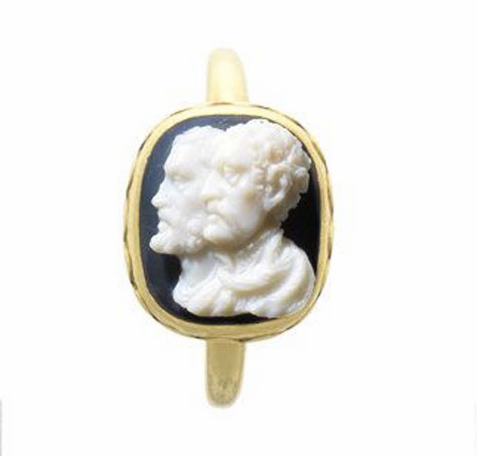 双人肖像浮雕戒指,采用玛瑙制作,创作于16-17世纪。